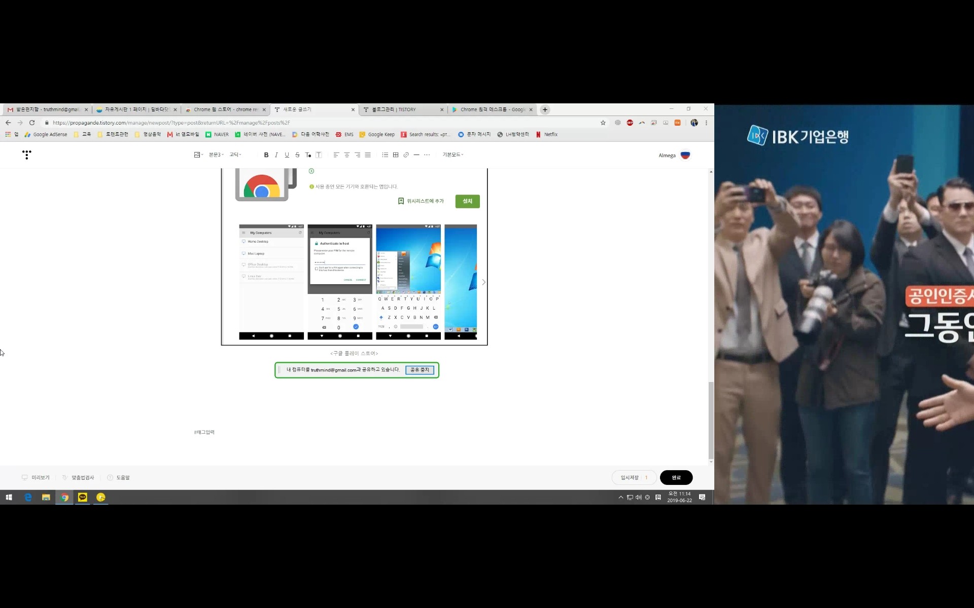 7) 이제 딴짓하며 PC화면을 손쉽게 안드로이드에 공유해서 봅니다.