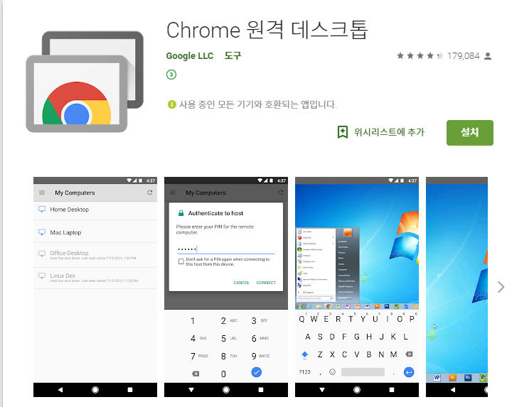 5) 이제 같은 Wifi에 연결된 안드로이드 기기에 구글 플레이에서 'Chrome remote Desktop'을 찾아 다운받아 줍니다.